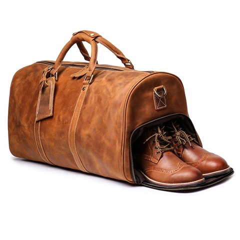 Bolso de viaje Vintage Crazy Horse para hombre, bolsa de equipaje con compartimiento para zapatos
